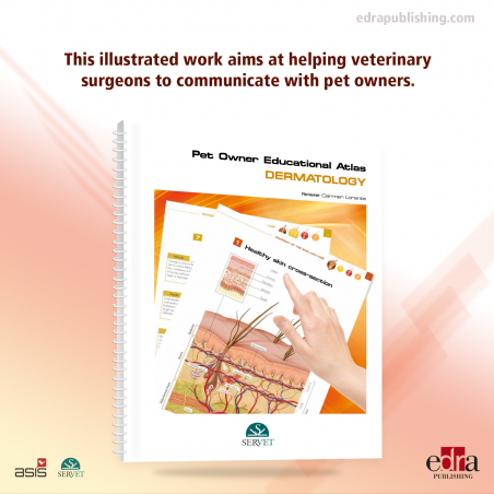 This illustrated work aims at helping veterinary surgeons to communicate with pet owners. After the previous volume about surgery, this atlas dedicated to dermatology helps the vet to explain the physiological and pathological characteristics of skin as well as the characteristics of diagnostic tests, treatments and surgical techniques. Every illustration describes the clinical aspects of the dermatology consultation: anatomical and physiological considerations about the skin and its adnexa, and graphic descriptions of infectious, inflammatory, endocrine, allergic or tumoral diseases. The clarity and accuracy of the illustrations turn this atlas into another useful clinical tool.