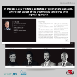 Nowadays, patients not only require restoring an edentulous site, but they would like to smile again, have their self-confidence restored and express it in their social life, working life and spare time at their best. In the book you found a collection of anterior implant cases, where each aspect of the treatment is considered with a global approach. On this site you’ll find extraordinary video animations about: periodontal plastic surgery of the parabolas before the finalization of a case with a global approach to smiling; ridge preservation for restore 3D bone volumes in sites of high esthetic value; connective graft to increase vestibular volumes of peri-implant tissue and PubMed linked references.